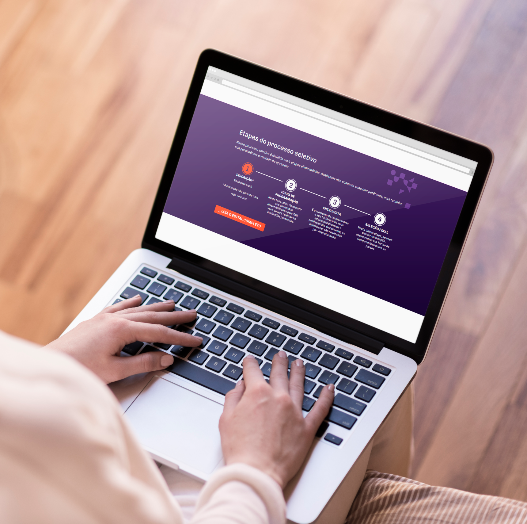 Nosso processo seletivo é dividido em 4 etapas eliminatórias. Avaliamos não somente suas competências, mas também sua persistência e vontade de aprender.